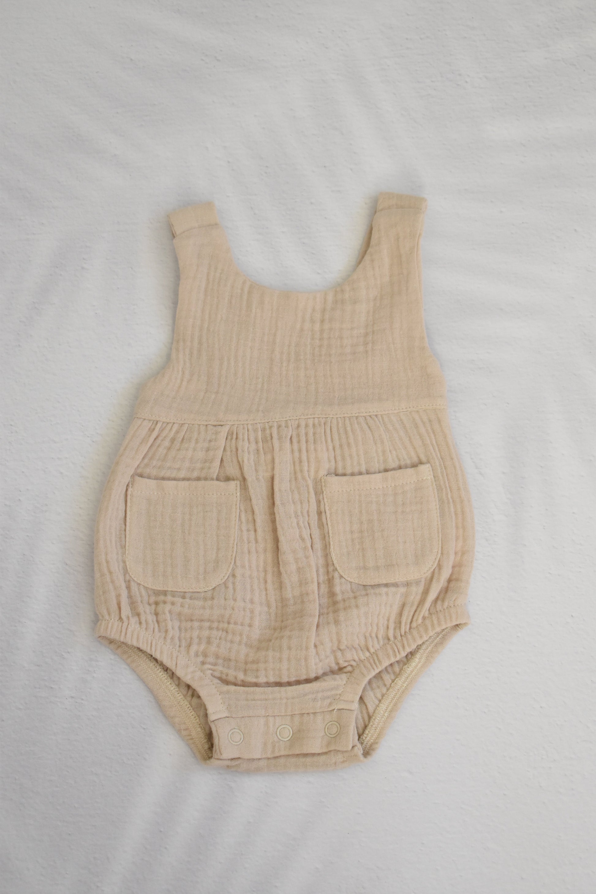 Made from premium organic muslin cotton, you can feel confident knowing you're wearing a sustainable and comfortable outfit. Rock this jumpsuit day or night, as it effortlessly transitions from a casual day look to a chic evening ensemble. The neutral colors add a touch of sophistication, while the three buttons at the bottom provide convenience and ease. Whether you're exploring the city or attending a special event, The Pocket Jumpsuit will surely turn heads and keep you feeling fabulous. Find your perfect fit and flaunt your fashion with this must-have wardrobe essential!